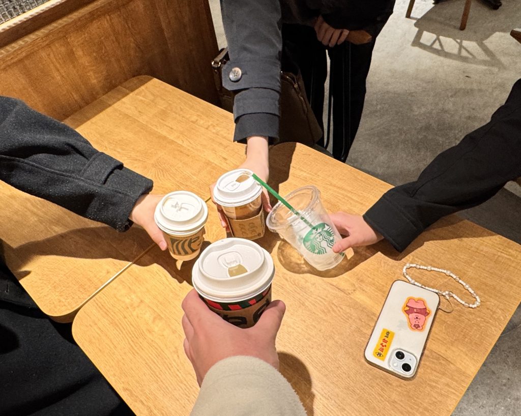 忘年会終了後は、スターバックスカードを手にしたことを聞きつけた同期たちが集まってきて、早速2,500円分使うことになりました(笑)