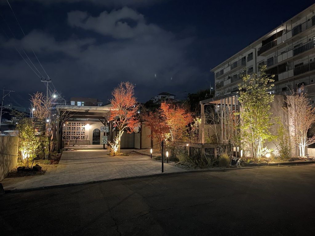 夜は照明があることで安全かつかっこいい外構になります♪